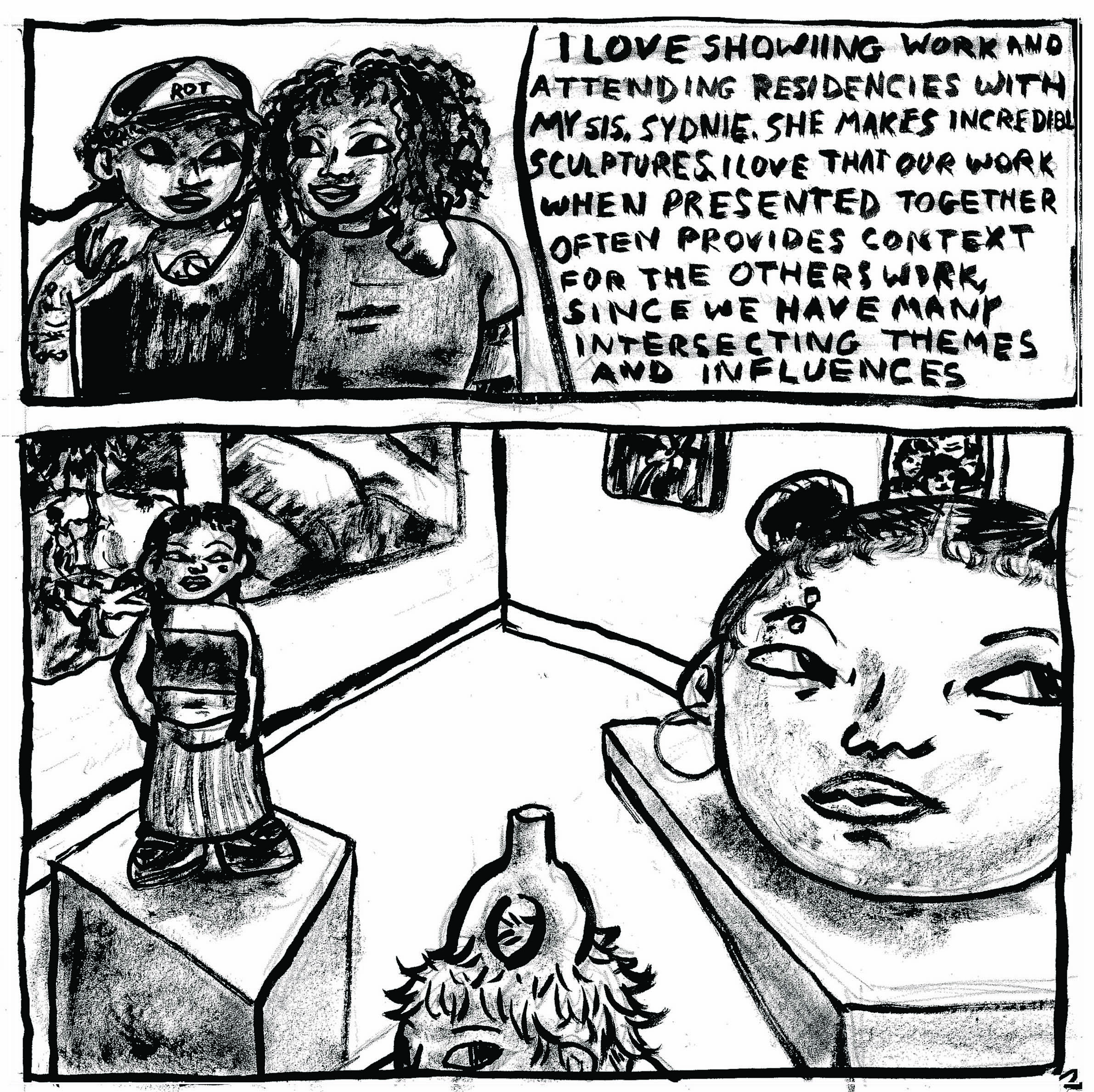 Haylie Jimenez, a native of Orlando, Florida, spent the majority of her teenage years in rural north Georgia alongside her twin sibling. In May 2020, she earned her BFA from the School of the Art Institute of Chicago. Jimenez's artistic focus revolves around portraying and highlighting the experiences of black and brown queer femmes. Her artwork often captures everyday scenes drawn from her own life, occasionally incorporating mythical or magical elements to underscore marginalized realities. Jimenez's creative practice encompasses drawings, printmaking, and animation. She is particularly intrigued by drawing as a means of documentation and explores how drawing styles are shaped by personal experiences and the subjects they depict.