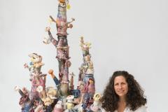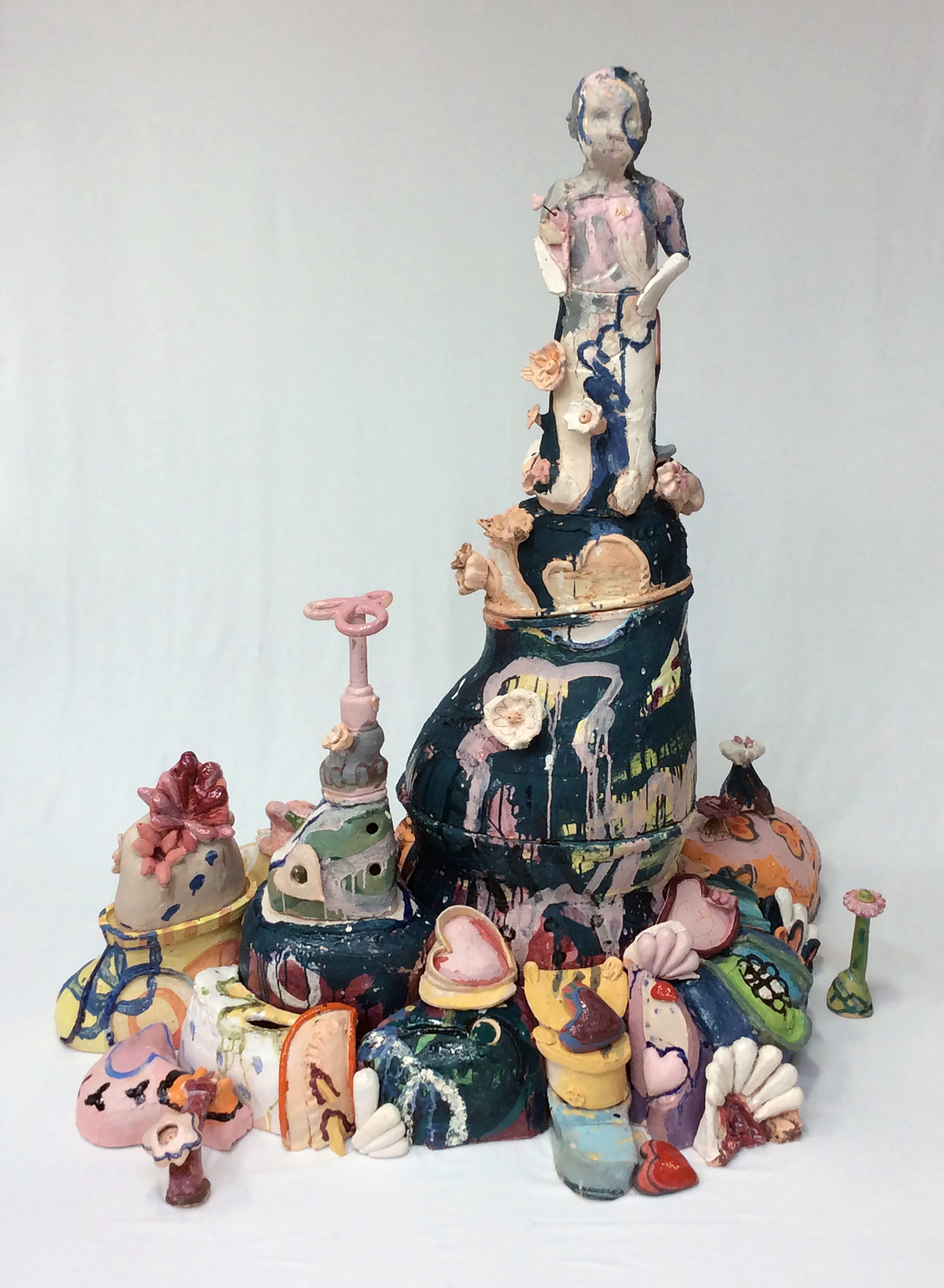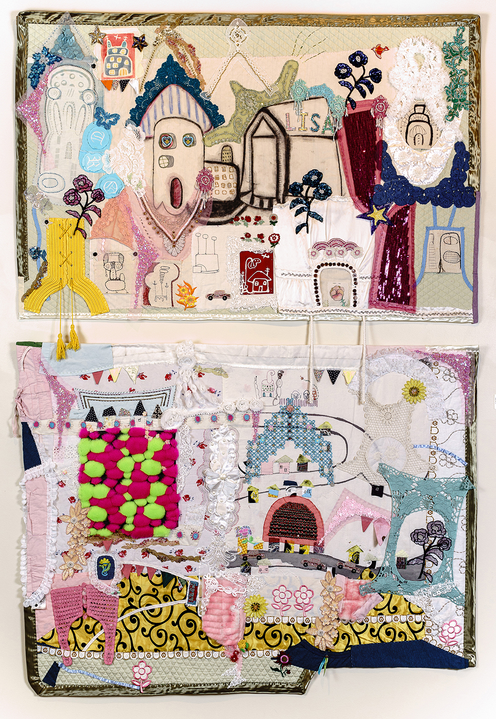 Lisa’s aesthetic sensibility is rooted in Central American folk art and the Mexican Catholic shrines of her heritage and upbringing in Tucson. Deliberate with showcasing the handmade quality of her work, she uses low-tech methods to create large assemblage ceramic sculptures and installations, as well as mixed media quilts. Her work encompasses imagined conceptions of home, gardens, peacefulness, playfulness, and celebration. She strives to make her work accessible to audiences of all ages and backgrounds.