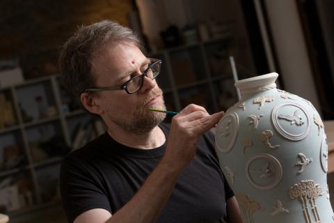 Brad Menninga received his BA in politics from Oberlin College (Oberlin, Ohio) in 1992 and his MFA from California College of the Arts (San Francisco) in 2010. He has published with Ceramic Arts Daily and Pottery Making Illustrated, and facilitated activist art-making workshops through the Portland, Oregon, chapters of Jobs with Justice and Art and Revolution. Menninga has created solo installations at the Mall of America in Minnesota and at the 2019 National Council on Education in the Ceramic Arts Conference (St. Paul, Minnesota). He is the recipient of a 2020 Minnesota Artist Initiative Grant and 2020 McKnight Artist Fellowship for Ceramic Artists.
