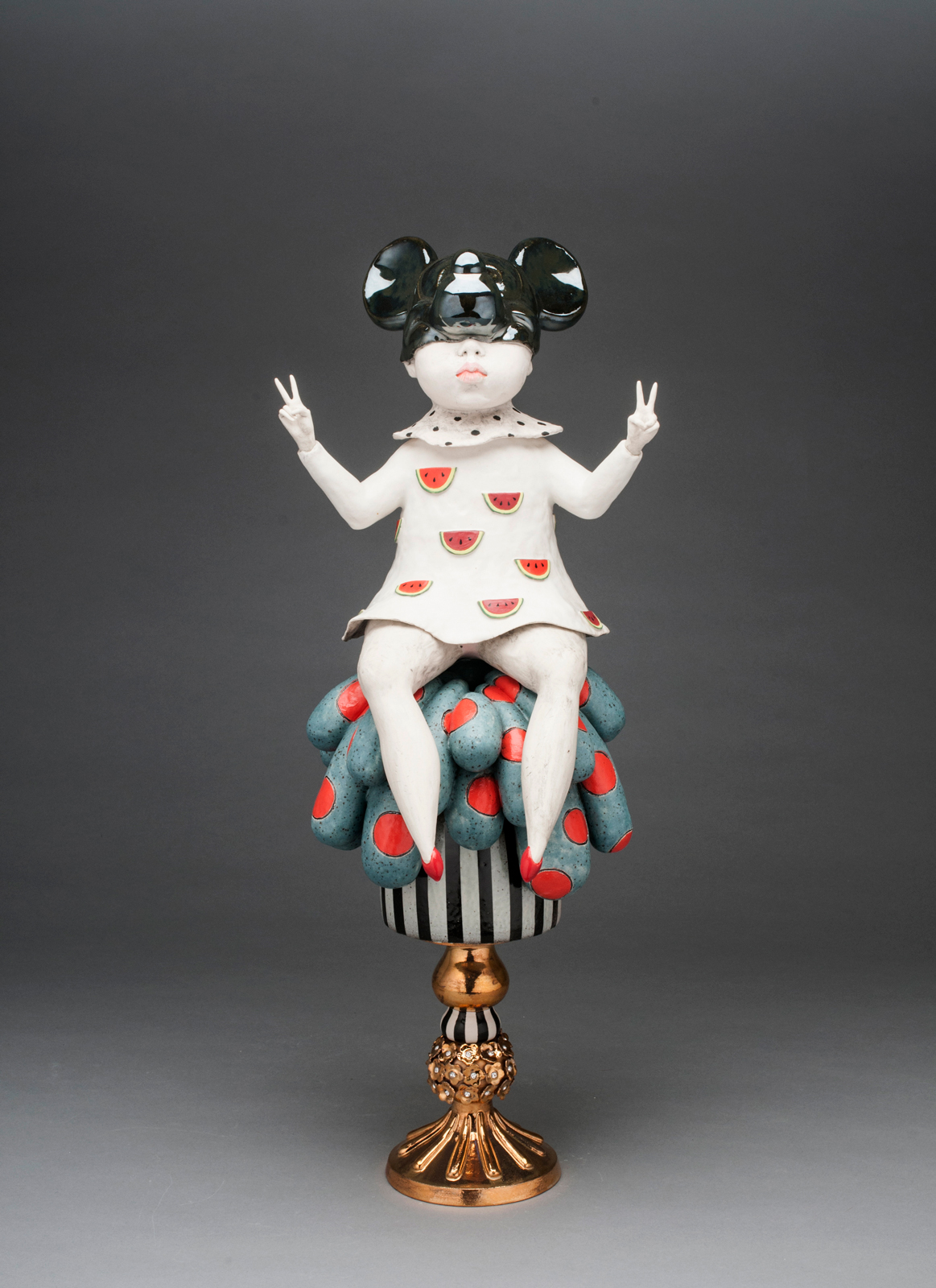 Ahrong Kim. “It’s Raining,” 2017. Porcelain, stoneware, luster, metal, resin. 10.5 x 6 x 15.5 in.Editor’s Note: Ahrong Kim is the recipient of Studio Potter’s “Emerging Voices” merit award given to a participating artist in CraftBoston Holiday, the Society of Arts and Crafts’ annual fair. Kim is a New York–based artist born in Korea. She received her BFA in Ceramics from Kon Kuk University in Korea in 2008 and her MFA from Rhode Island School of Design (RISD) in 2013. SP interviewed Kim via e-mail, and has edited questions and answers for clarity.