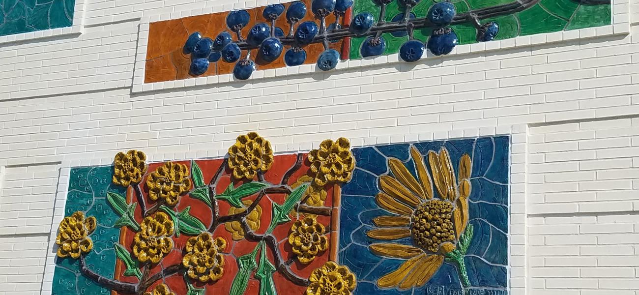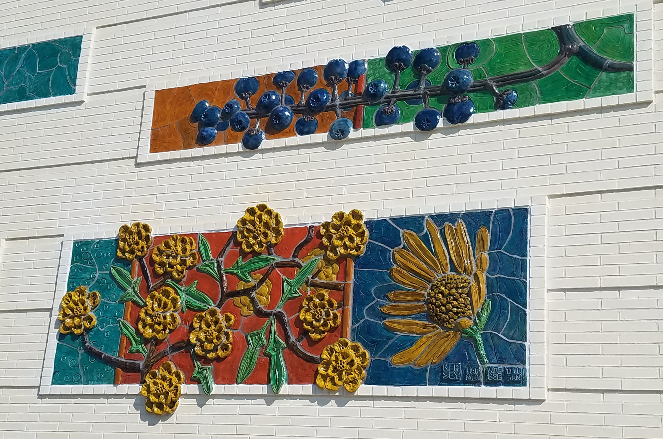 Other public art awards followed the Catalpa-Pershing bridge project that Kersey completed in 2011. The process of creating artwork for the new Houston Street Bridge, which, at 330 feet long by sixty-five and a half feet wide was more than four times the scale of either the Mulberry or Millrace bridges, would occupy Kersey from April of 2012 to its completion in February of 2015. Once again, place-making for Kersey entailed researching the cultural and natural history of San Antonio’s Eastside (East of the San Antonio River), a predominantly African American neighborhood where the new bridge would be built to traverse the Salado Creek Trail. Abundant imagery recording the area’s history, plants, and animals for the sixty-four ceramic panels that Kersey would incorporate into the guardrails was shaped by survey questions posed to the local community.1