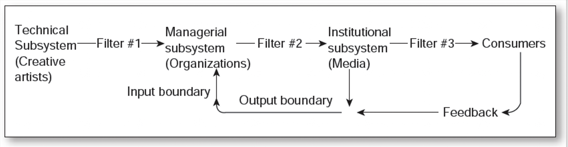 In 1972, sociologist Paul M. Hirsch developed a useful model outlining the relationship between systems and consumers of pop culture.ix In Processing Fads and Fashions: An Organization-Set Analysis of Cultural Industry Systems Hirsch states: