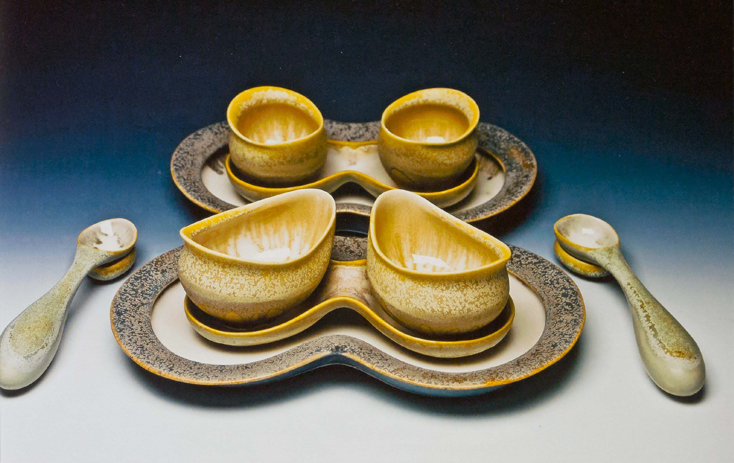 As you load up the spoon, you dive for a pleasing combination of flavors and textures, building anticipation for the imagined mouthful. It is not until you start to lift the spoon that you remember this spoonful is destined not for your mouth but for the mouth of the person you are sharing food with. Your attention shifts to her face, and you wonder how she will experience the bite you so carefully arranged on the spoon. You check in with her eyes (Is she ready?), and lift your spoon to her mouth to carefully deposit your bite. Then it is your turn. Your dining partner arranges a spoonful for you and lifts it toward you. You have a flash of anxiety (Will the spoon hit my teeth?) before summoning the courage to open your mouth to take the offering. There is a crossing of boundaries here, an opening not only of your mouth but also of your personal space. Designing and making ceramics that people use to feed each other is a way for me to use material form to explore the boundaries of subjectivity by engaging our sense of self-and-other. Feeding someone cultivates empathy, as our attention focuses on that person rather than on our own satiation. We extrapolate from our experience to imagine what the other feels. We read the face and body for clues - the eyes and the mouth, possibly posture and hand gestures - of when and how much to feed. Being fed cultivates physical and psychological vulnerability, as we reveal our hunger and offer access to our inner lives. During mutual feeding, my pottery forms bridge the space between two subjectivities, each one simultaneously reaching and receiving.