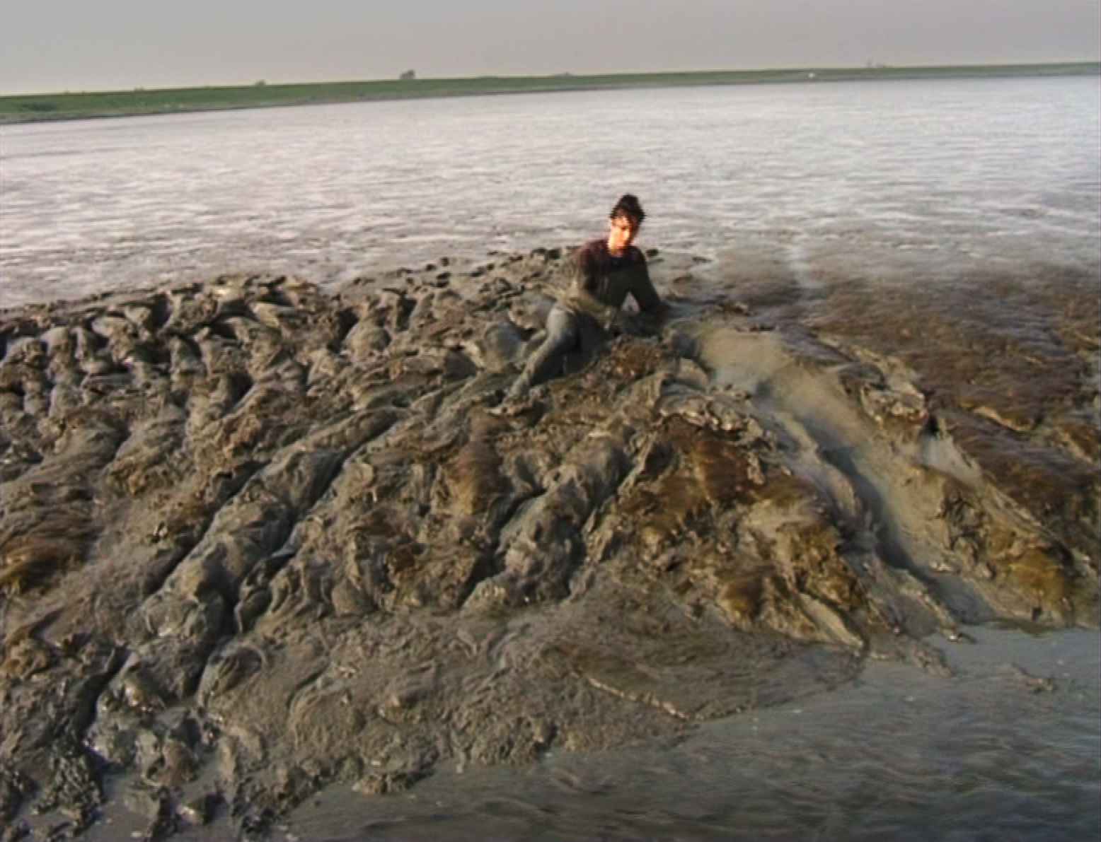 During a residency in 2000 in the northeast part of the Netherlands, I discovered the mudflats of the Dollard, the estuary of the river Eems, where the sea penetrates the land and goes out again, land and sea mutually shaping each other, a place both water and earth. When the tide is out, a bed of soft silt is exposed.