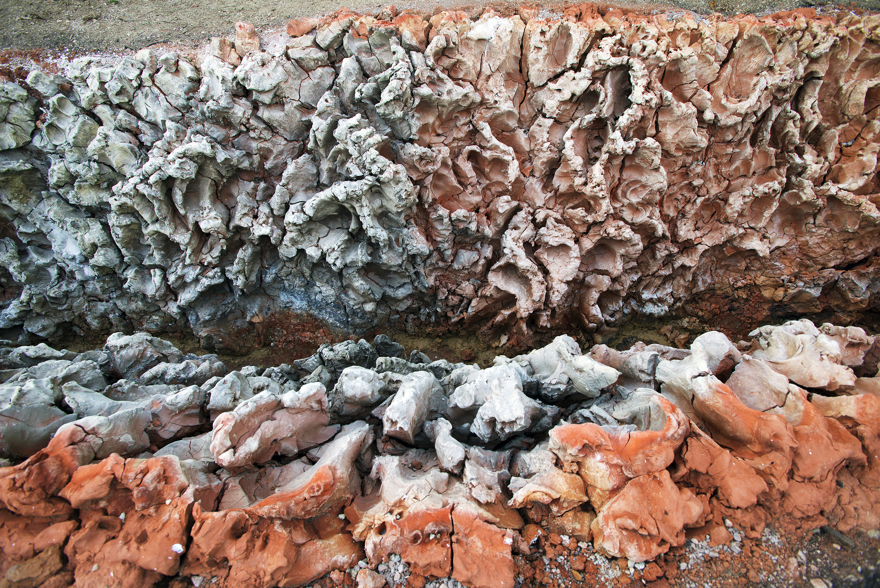 Wood-firing is capable of preserving the immediacy and the sense of bodily presence of my work. Fire had become another natural element with which I collaborate, which in turn leaves its traces in the clay. But it was the first time that I fired such a monumental site-specific work on the spot by building a wood-fired kiln around it.