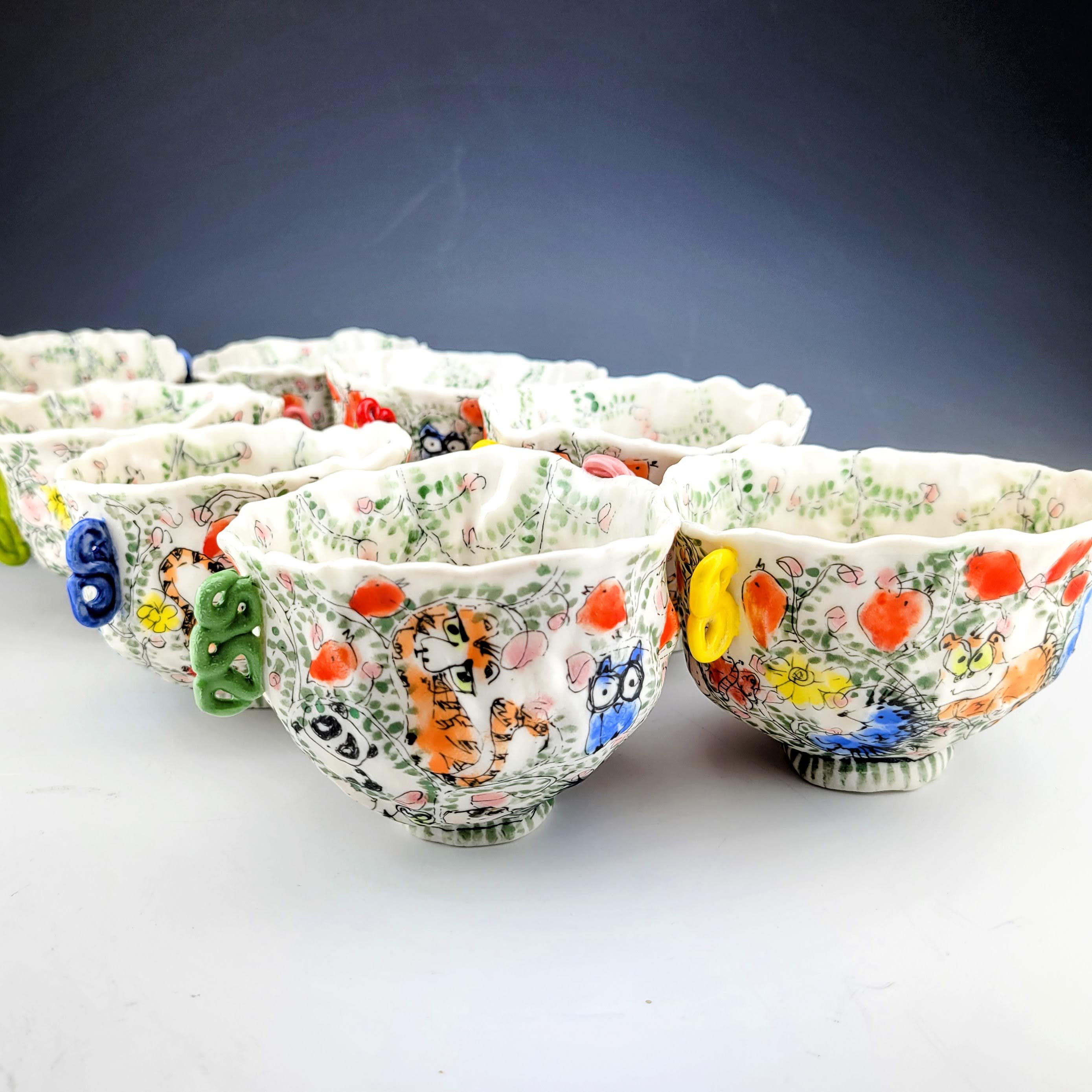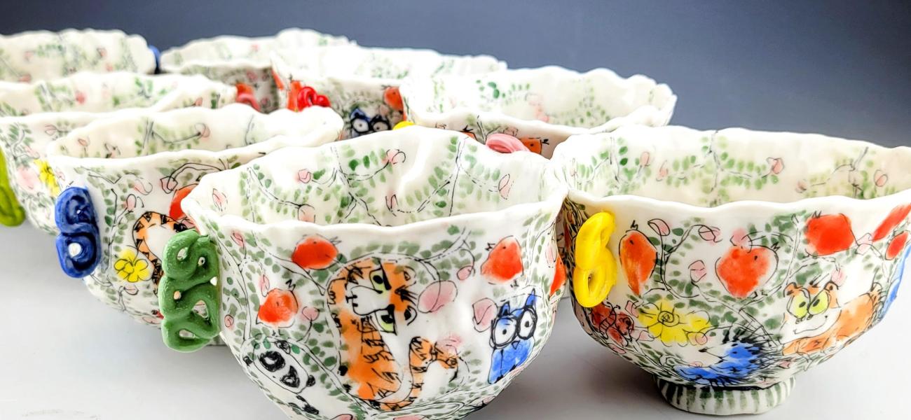 During the home-schooling journey with my son, our speech therapist suggested creating a "happy memory box," a paper box where we kept our happy previous experiences in pictures or written stories – whether it was a walk in the woods, jumping into piles of fallen leaves, or witnessing a flower bloom – making them tangible and concrete so that he could look back at those in moments of distress or when focusing on unhappy things. My son’s anxiety improved, and we both now pay more attention to things we find delightful. These became the inspiration for my joyful ceramic creations later.