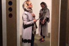 Jillian Echlin looking at artwork by Abbas Akbari: My city Kassan, Kah, Feshan, Kashan, 2017.  200x50x30 cm.