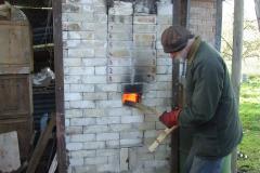 The Forestry Commission has published figures showing that different species of wood have almost the same calorific value. Our practice is to dry the willow under cover for one summer and the ash for two. Beyond any doubt willow will easily take this kiln to 1,300 degrees Celsius. The large firebox, equal in volume to the chamber, is almost certainly the reason for this.
