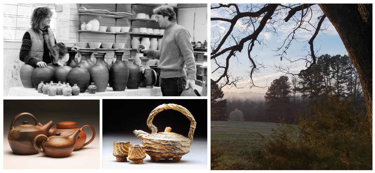 Gary and Daphne Hatcher are certainly not unique in their pursuits and accomplishments; thankfully there are potters across the country who share similar trajectories, success stories, and longevity. Yet their forty-two-plus years running Pine Mills Pottery near Mineola, Texas, bears honoring and celebrating. They epitomize the core constituency at the origin of Studio Potter journal, “by and for potters.” Their list of accomplishments begins with apprenticeships. From 1976 to 78 they studied with Michael and David Leach in England. From there the accomplishments continued: building their studio and wood kiln in rural East Texas; establishing a loyal clientele who have now returned through three generations; and adapting their marketing and sales to the digital age. The simple fact of sustained self-employment for more than forty years is significant, but this accomplishment is amplified by their unflagging commitment to high quality production and the full integration of their livelihood into a holistic lifestyle. Married when they were twenty, they have spent their lives wholly committed to each other and the shared belief that making art would sustain them financially and in all other facets of their lives. That they pioneered a model of astute entrepreneur and passionate creator is perhaps most noteworthy in a day when this combination of skill sets seems standardized; it was not when the Hatchers began.
