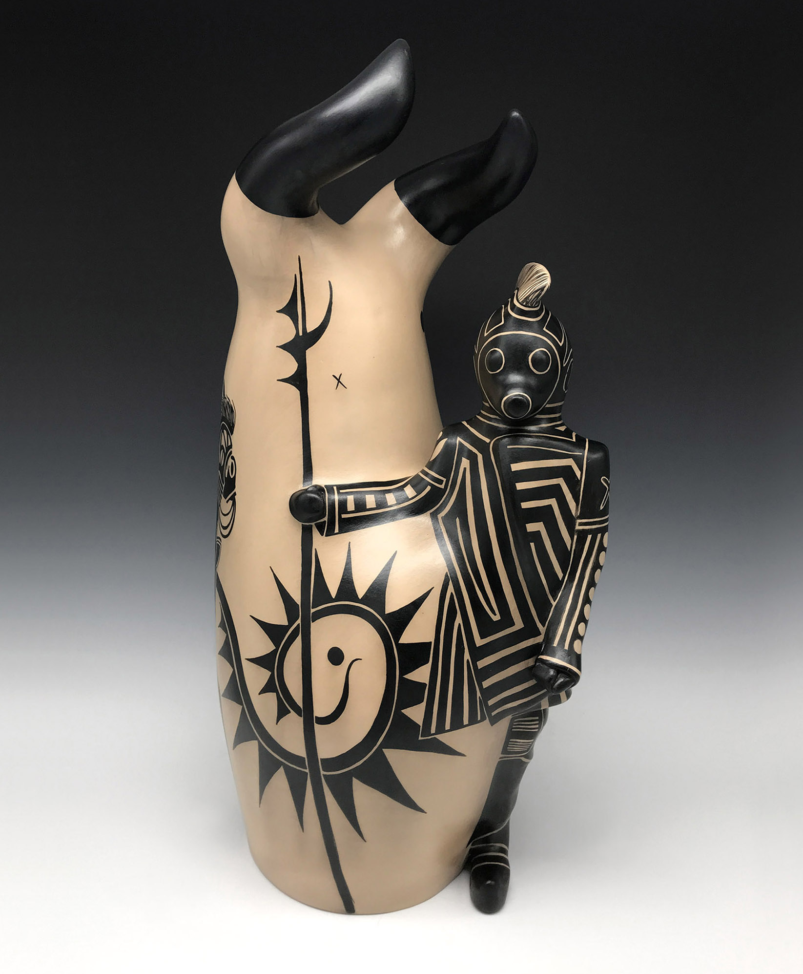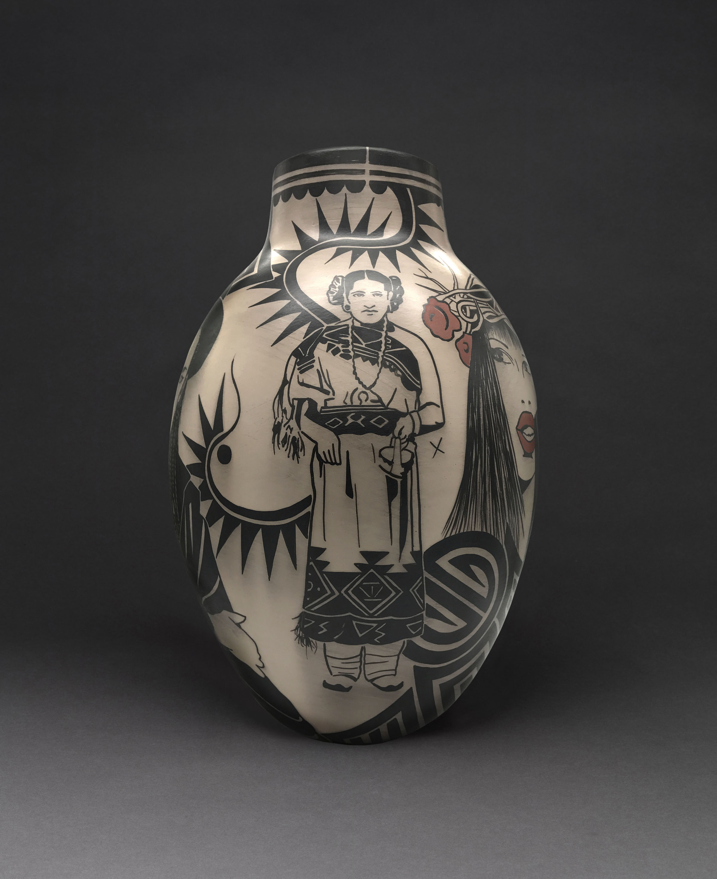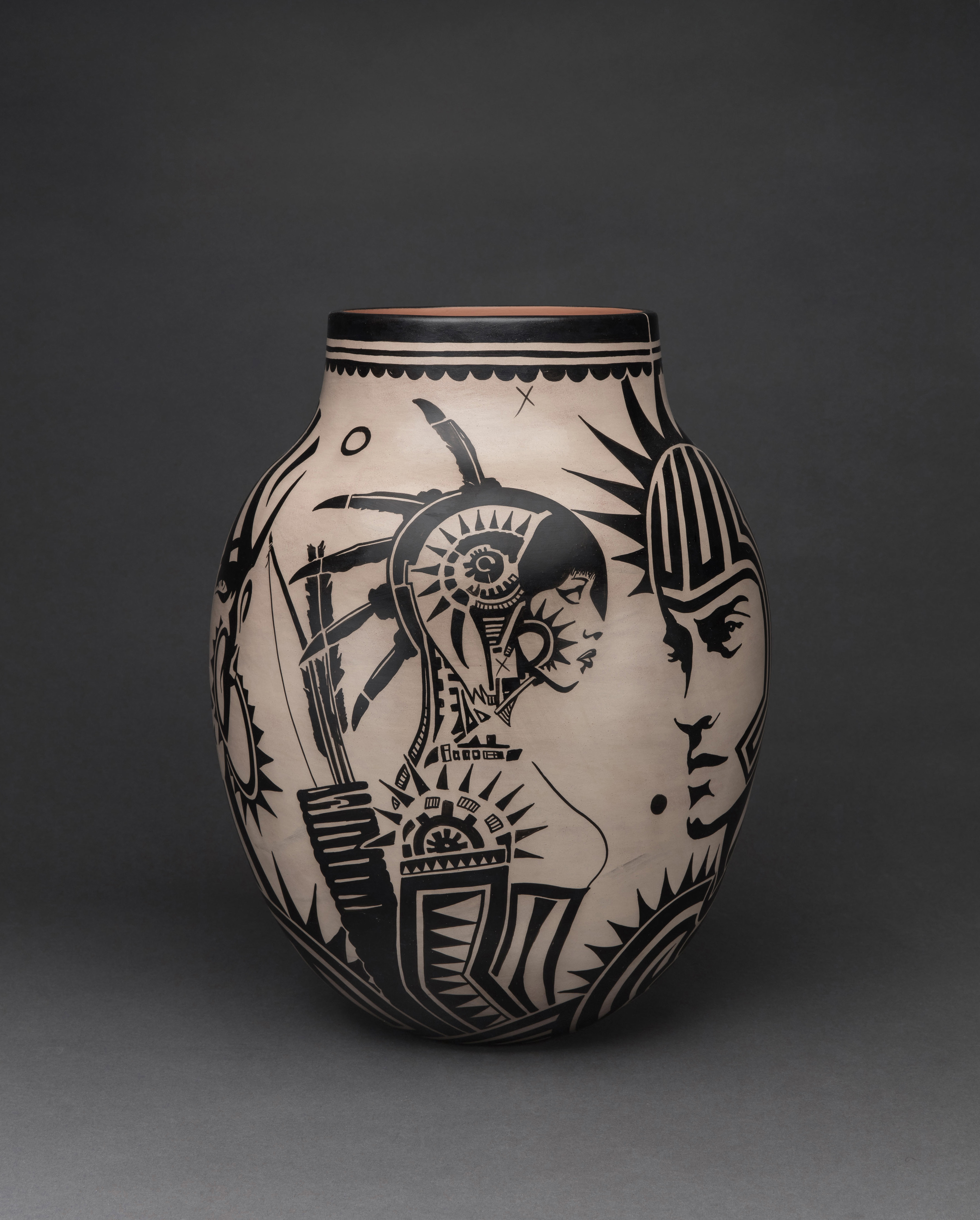 Virgil Ortiz got his start in clay making pots at his home on the Cochiti Pueblo in New Mexico. He follows and extends the matrilineal heritage of Pueblo pottery. Laurencita Herrera, his grandmother, and Seferina Ortiz, his mother, were both renowned Pueblo potters. Tish Agoyo is his cousin. She is also his manager and the founder of NDN Star, a company she started to support and promote indigenous artists. The relationship between Ortiz and Agoyo provides a unique opportunity to view  a studio practice from two distinct angles that can be at odds with each other, especially when embodied by one person. Their partnership is an example of two people working toward a common goal, each playing to their strengths. Agoyo, generously transparent, sat down with Studio Potter last month to share her insights about the business of art, the rewards (and hazards) of letting your authentic voice shine, the need to be honest and disciplined in order to find freedom, and the importance of a strong foundation. Yes, Ortiz is operating in a higher economic bracket than most functional potters, but the conversation with Agoyo raises points that are worth considering in any market.