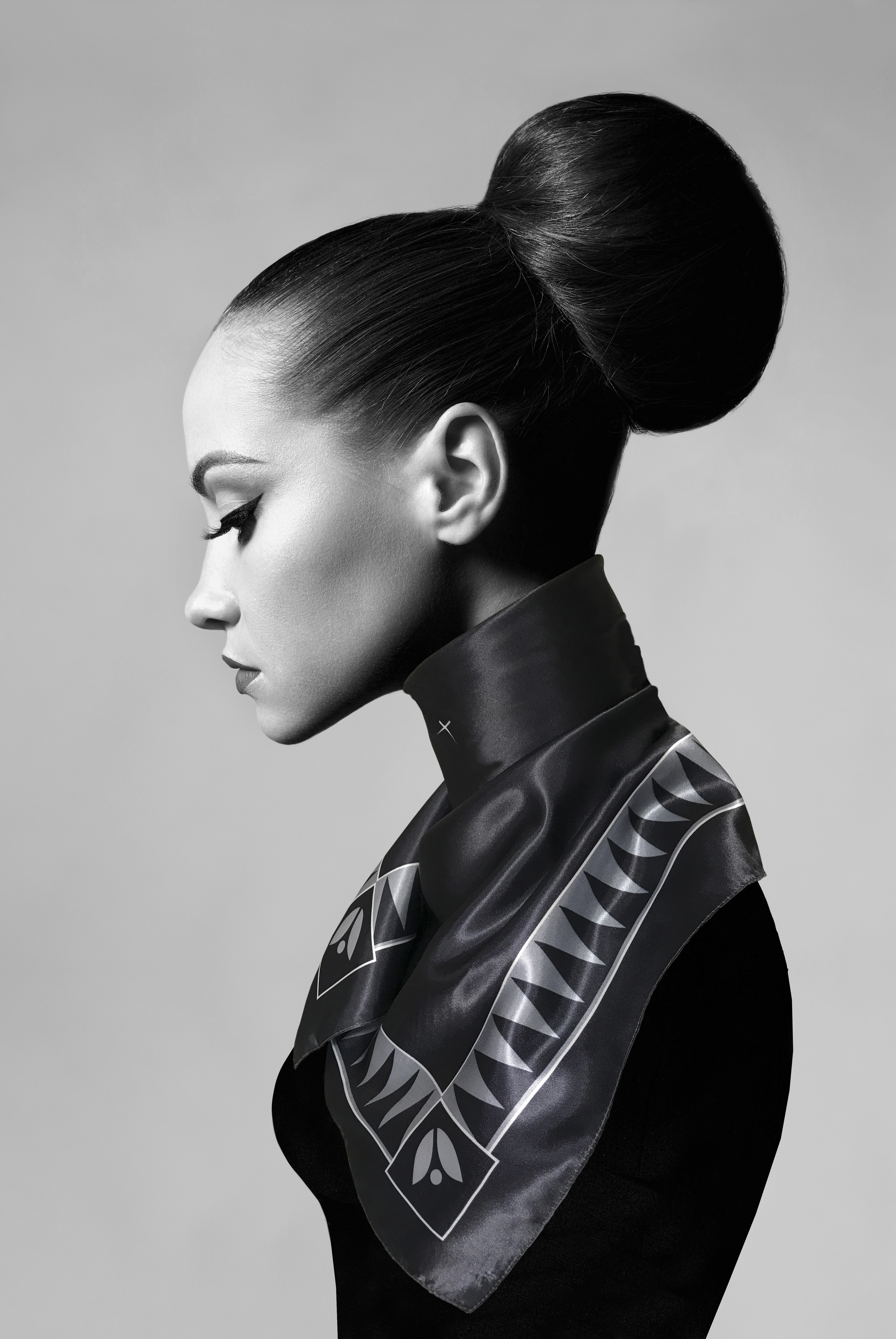 Model is wearing VO couture silk dress paired with VO signature patent leather handbag. Photo credit: Virgil Ortiz