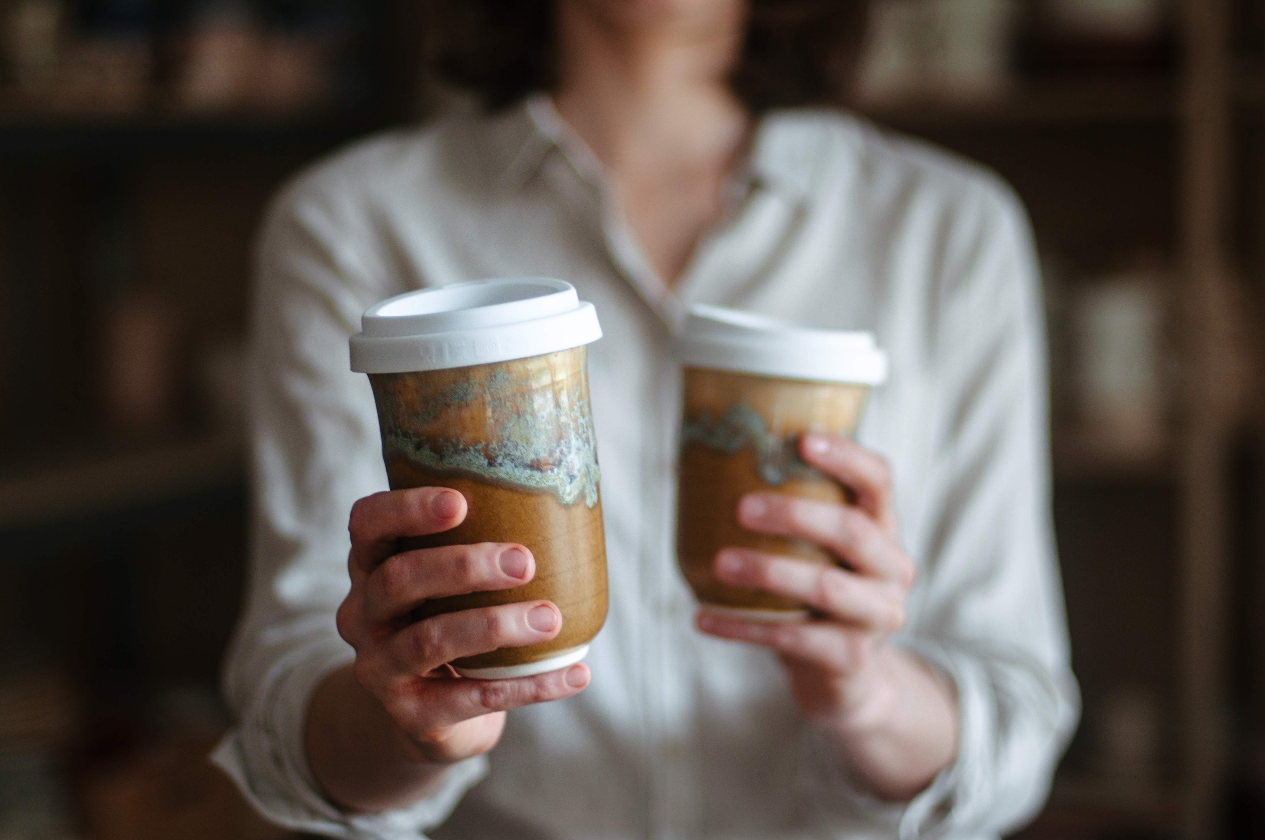 Single fired double wall ceramic travel cups. (c) Olena Angelova