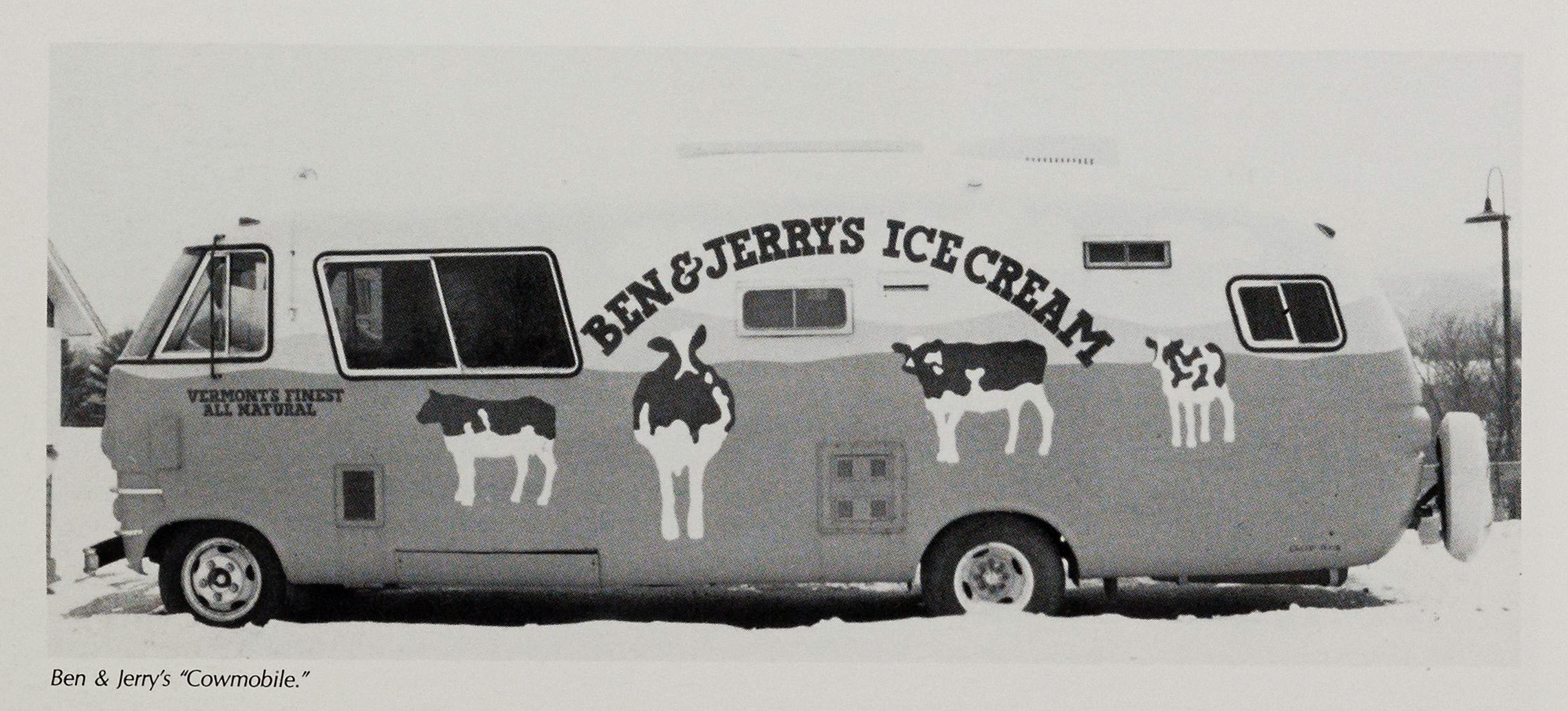 Ben & Jerry’s launches its "Cowmobile" in i 986, a modified mobile home used to distribute free scoops of Ben & jerry's ice cream in a unique, crosscountry marketing drive—driven and served by Ben and jerry themselves. The "Cowmobile" burns to the ground outside Cleveland four months later. Ben says it looks like "the world's largest baked Alaska."