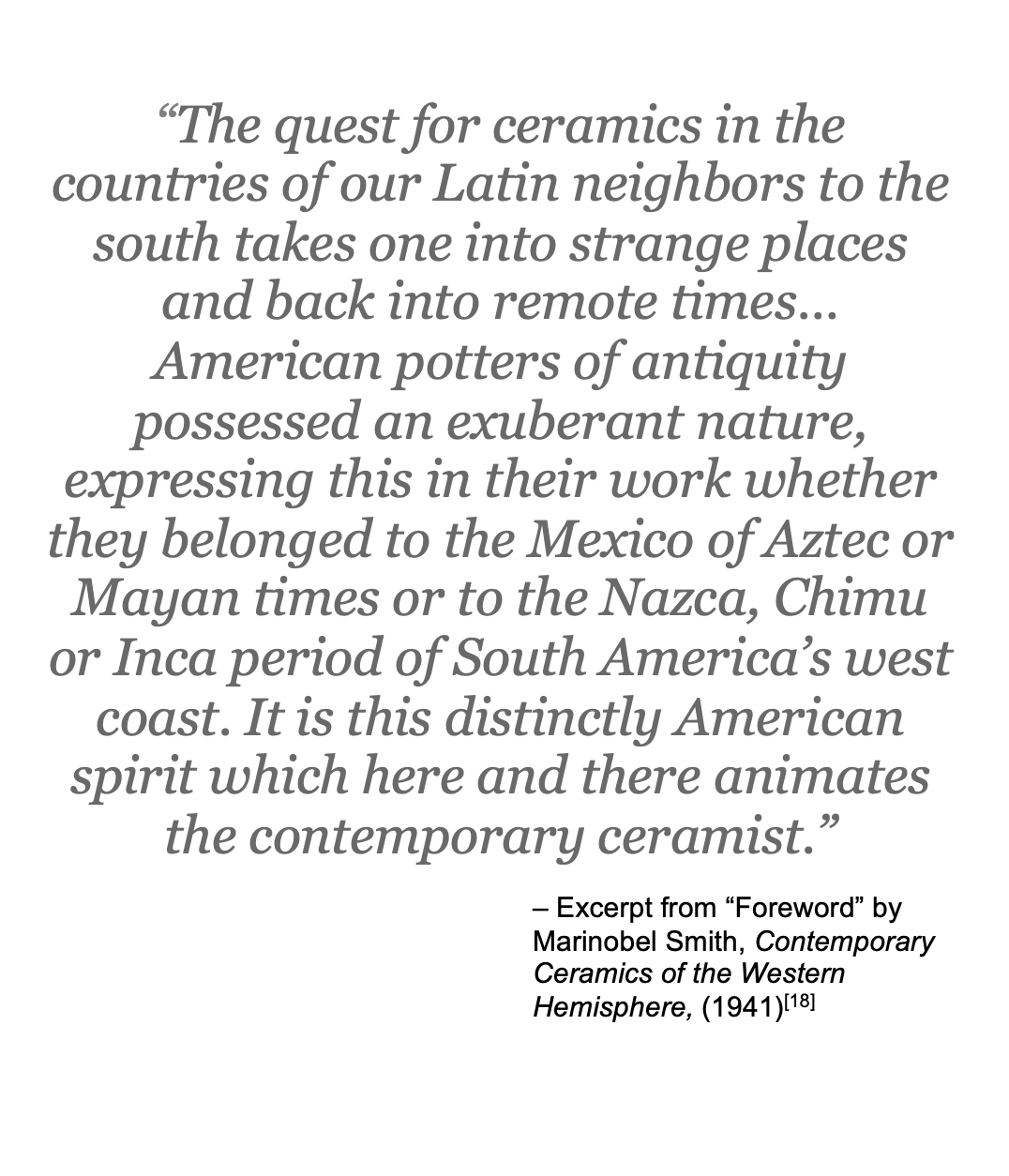 [18]Contemporary Ceramics of the Western Hemisphere. (Syracuse: Syracuse Museum of Art, 1941), 31-32.