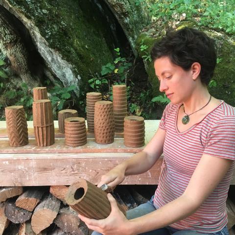 Naomi Dalglish is half of the duo that makes Bandana Pottery. She and her husband, Michael Hunt, live in the mountains of North Carolina with their two daughters and are known for their wood-fired pottery made from the local red clay that surrounds them. Dalglish can be reached at dalglna@earlham.edu, and followed on Instagram @bandanapottery.