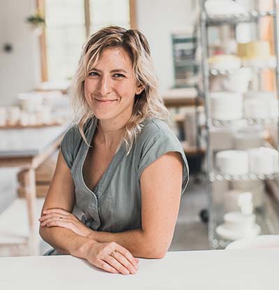 Justine Barrett Figura received a BFA from Alfred University in 2010, and went on to a two-year apprenticeship with potters Donna Polseno and Richard Hensley. She moved to Western Massachusetts in 2013, and soon thereafter started a collaborative line of pottery alongside her husband, Grant Figura. Justine is a full-time potter, head designer and Jill-of-all-trades for their brand ⏤ Tandem Ceramics ⏤ which has been represented by dozens of galleries and boutiques around the US and Canada. Through Tandem Ceramics, she has created various internships, apprenticeships, and employment opportunities within the clay community over the years.