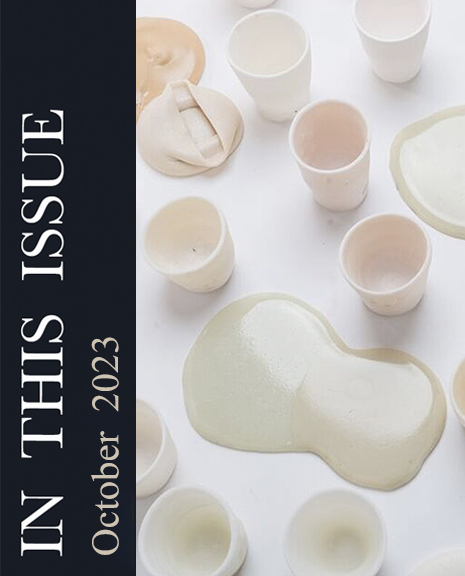 I suffer from severe anxiety that has led to disruptive vision problems. My purpose in sharing this little-known fact about myself is not to compare myself to others' moments of vulnerability, but to simply say I am one of the many people in the world who you encounter regularly – both in person and digitally – that you may or may not know to have a disability. Reducing the stigma of a seen or unseen disability is about recognizing that everyone has battles, visible or not. And when your colleagues, students, and friends voice concerns of discomfort – physical and emotional - it is a moment to validate, support, and build a more equitable space. In our third and FREE article within the October issue, Andrew Snyder deconstructs his twelve-year research quest to develop low-fire porcelain. With strategic failure and intentional persistence, Andrew builds a road map for success. In our fourth article, our authors, Jesse Albrecht and Ulf Pike, express what navigating a creative life is like post-combat. To point out the pink elephant in the room, this article addresses thoughts of suicide and exposes the parallels between philosophical thinking, artistic creation, and the trauma that built us. At this point in my "In This Issue," it seems like common sense to say, "If you are having thoughts of suicide, please call:”