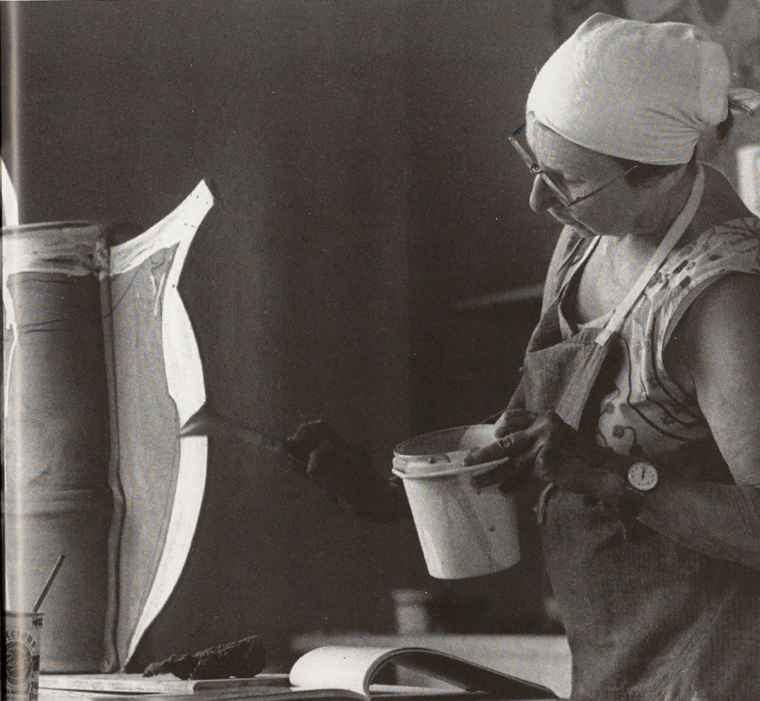 I learned a tremendous amount at the school. I received a "journeyman's certificate," and my graduating journeyman piece was a punch bowl with 24 cups. During the two years, when one was skilled enough, one presented a production item which was in turn sold through America House in New York City. My first production item was a custard cup, a perfectly good production item. I still have all the records on how we figured out how much it cost to produce. There was a set of six: two green, two blue, and two yellow. They sold for $1.50 at America House, of which I received .35 cents. The shop received .75 cents, and .40 cents went to the school produc-tion costs such as overhead, clay, materials, firing, etc. One was supposed to keep a record of how many minutes were spent, for instance, wedging the clay for each cup. This discipline has stayed with me, and I still feel that if I go from a to b, it mustn't be this way but that way.