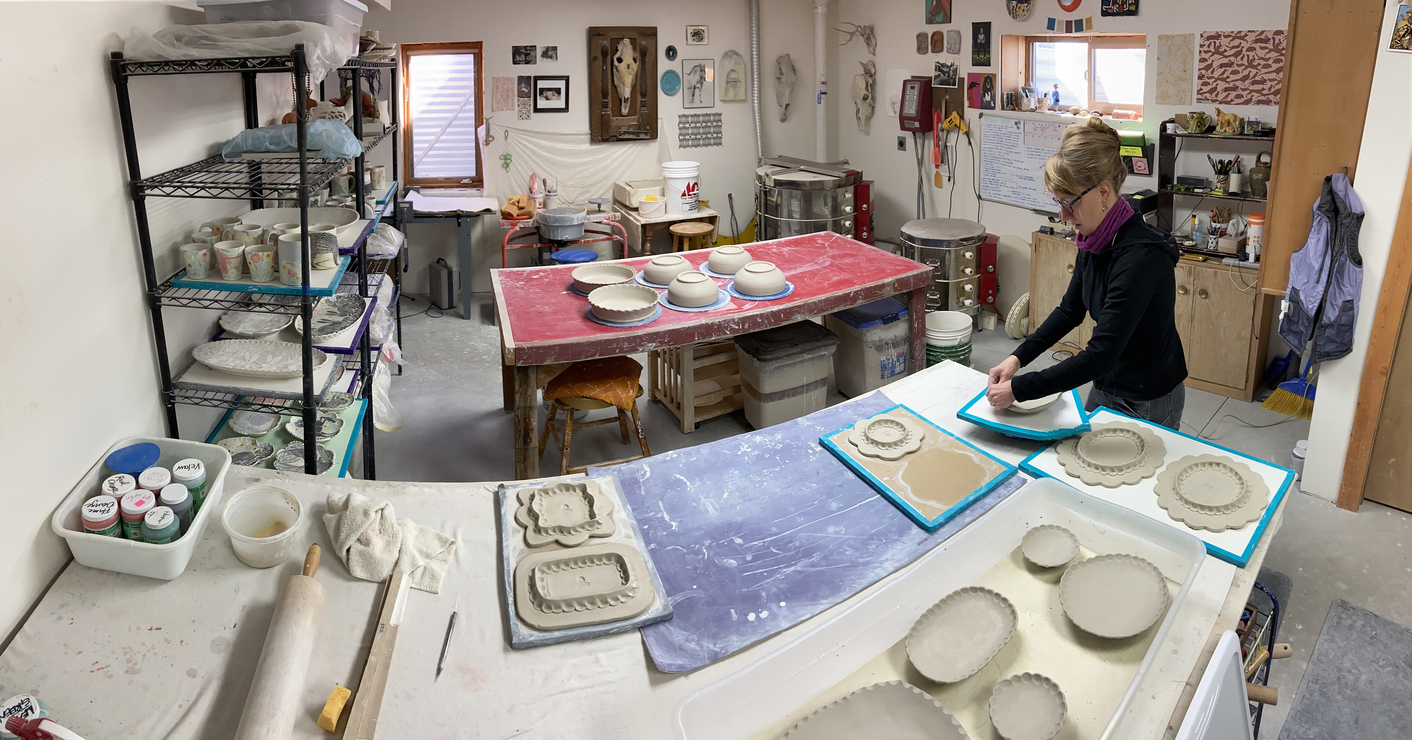 Curious to learn, I sat down with Sue Tirrell, someone who has long-standing relationships with many galleries and experience working with a larger corporation, to discuss how she grew her studio practice into a viable business. I got some answers to my burning questions: How can you direct your path towards a life you want to live? How can you manage a boundary between your personal life and work? Especially, when social media seems to blur those lines and your studio is right next to where you do laundry! She generously shared the story of how she built and navigated her gallery relationships and also her thoughts on what galleries do to earn their commission. We discussed what it’s like to sell wholesale and how those systems can work for a very tiny business. She shed light on the specific realities of the hard work, planning, and creative thinking it takes to reach your end goals. I am excited to share what I learned with you.