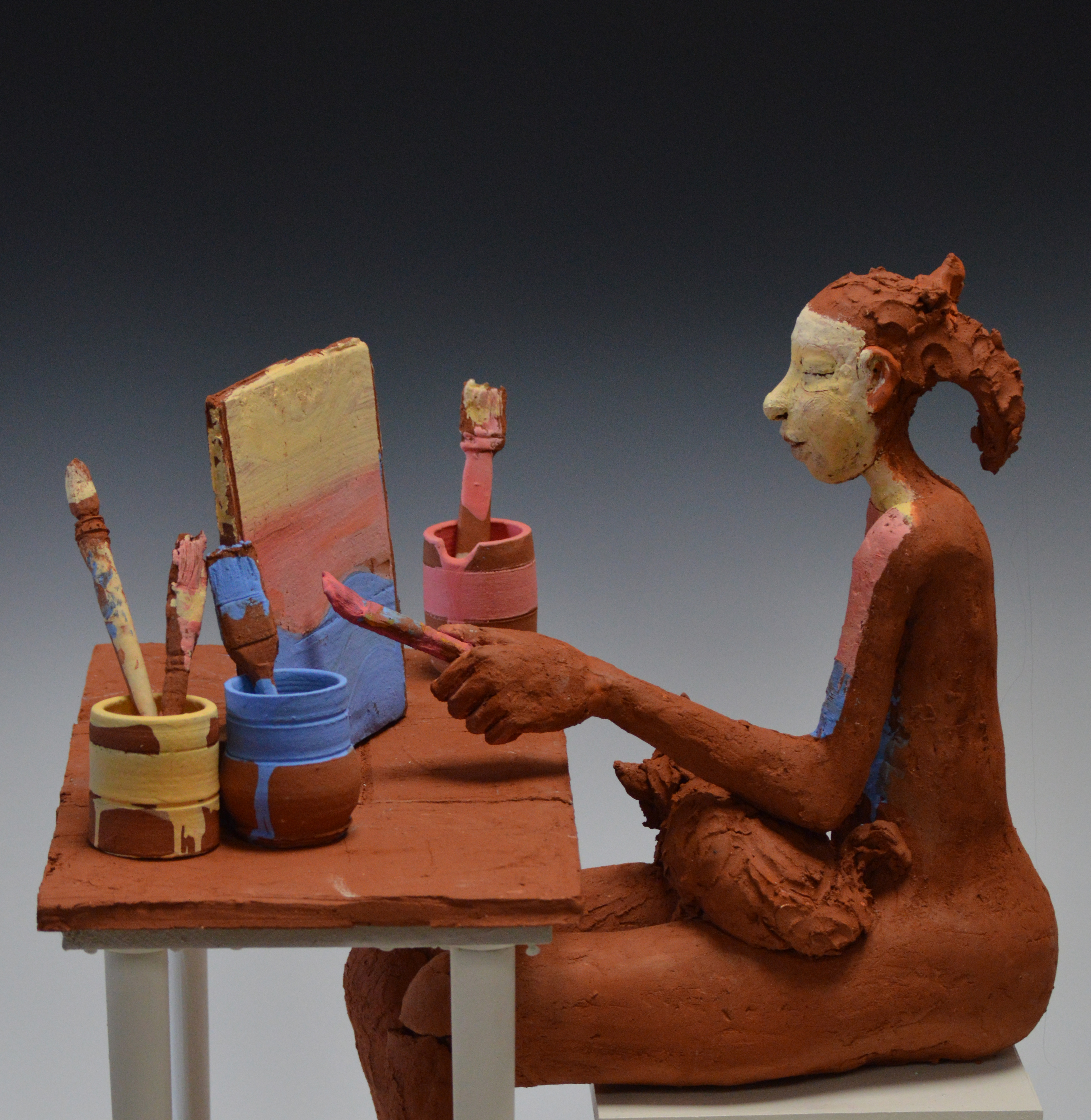 The work for which I am best known is sculptural, yet the wheel has always been my center. The teapots, cups, and paint jars in my sculptures have a special meaning for me, and they are meant to honor my first love in ceramics, wheel-throwing.