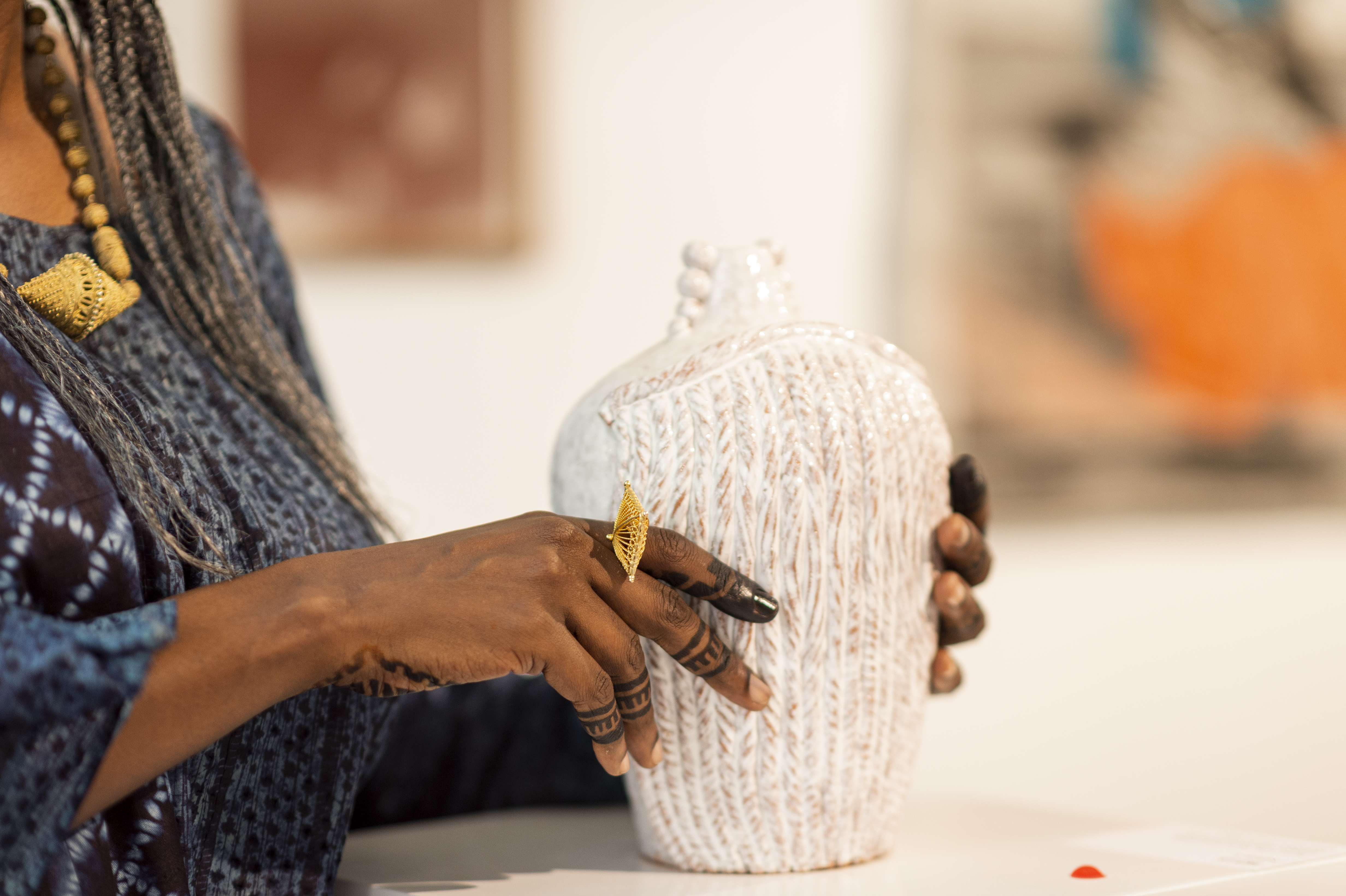 FL: Ceramics appeared in the Neolithic period across continents and served multiple uses, from housing to vessels. As a versatile material, it has been found on many archeological sites, enabling one to find out about people and their lives, hence tracing people's stories around the world. To this day, ceramics continue to tell stories, and they are invested in by craftsmen, designers, and artists who remain attached to their materiality and surfaceness. Ceramics is still a material of choice in the art world, from sculpture to sgraffito; therefore, for me, porcelain surfaces and ceramic materials enable me to witness Senegalese or Ivorian stories and share their traditions with the rest of the world.