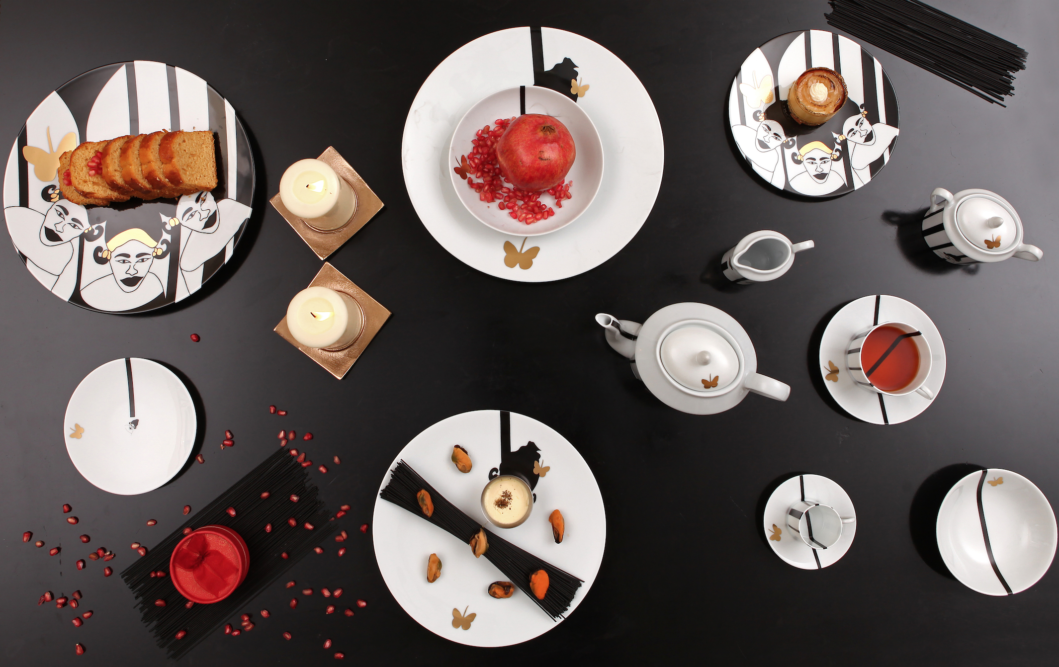 ROB: The surface of your tableware is beautifully designed and hand-drawn by you. Do you source the tableware from external suppliers? Do you send your design out to be printed by the manufacturer? How does that process work?