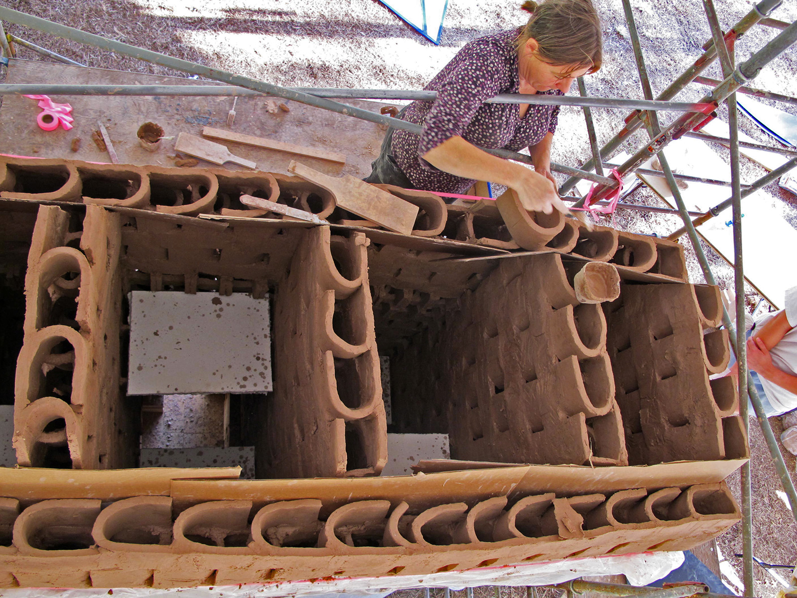 In February of 2016, Danish ceramic artist Nina Hole died. I had the great fortune to interview her in her home outside Skaelskor, Denmark in 2012. She was a bright light in the ceramic community and a force of nature with her monolithic wood-fired sculptures. With the help of building teams, she constructed towering forms that were fired in place and unveiled at their peak temperature. Her “fire sculpture”s have been built in a variety of urban and rural settings in Mexico, Denmark, Australia, the United States, and elsewhere. --Ben Carter
