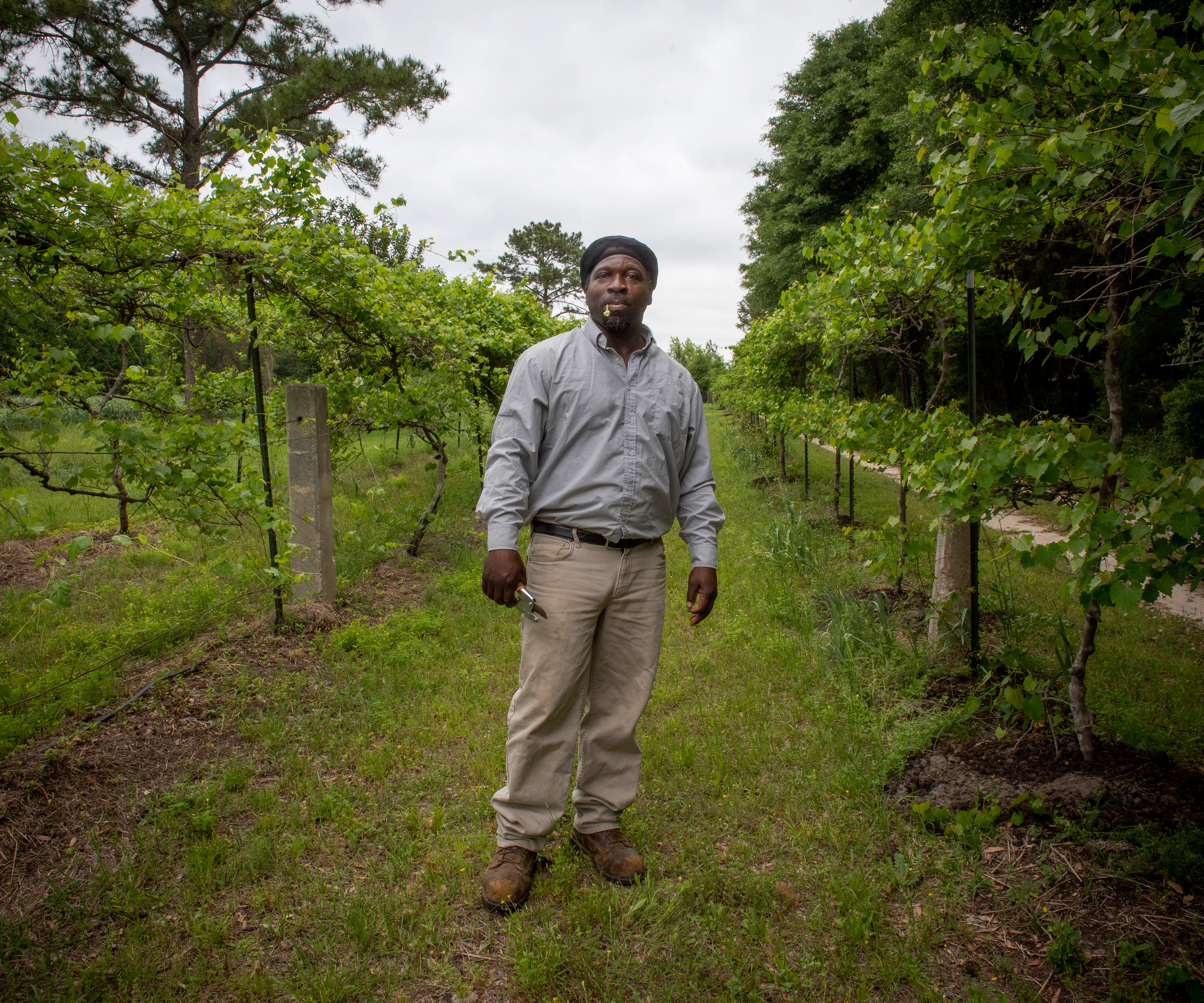 Calvin Davis, now in his 40s, is known as the "Real Green Man," a full-time truck driver, part-time organic vegetable grower. "I just love farming, I love the land, and I love watching stuff grow," said Davis in an interview with the State of Florida Folklorist, Amanda Hardeman. When not delivering freight, Davis grows collard greens, kale, and muscadine grapes on a small acreage in North Florida and he distributes them through local churches and word of mouth clients.