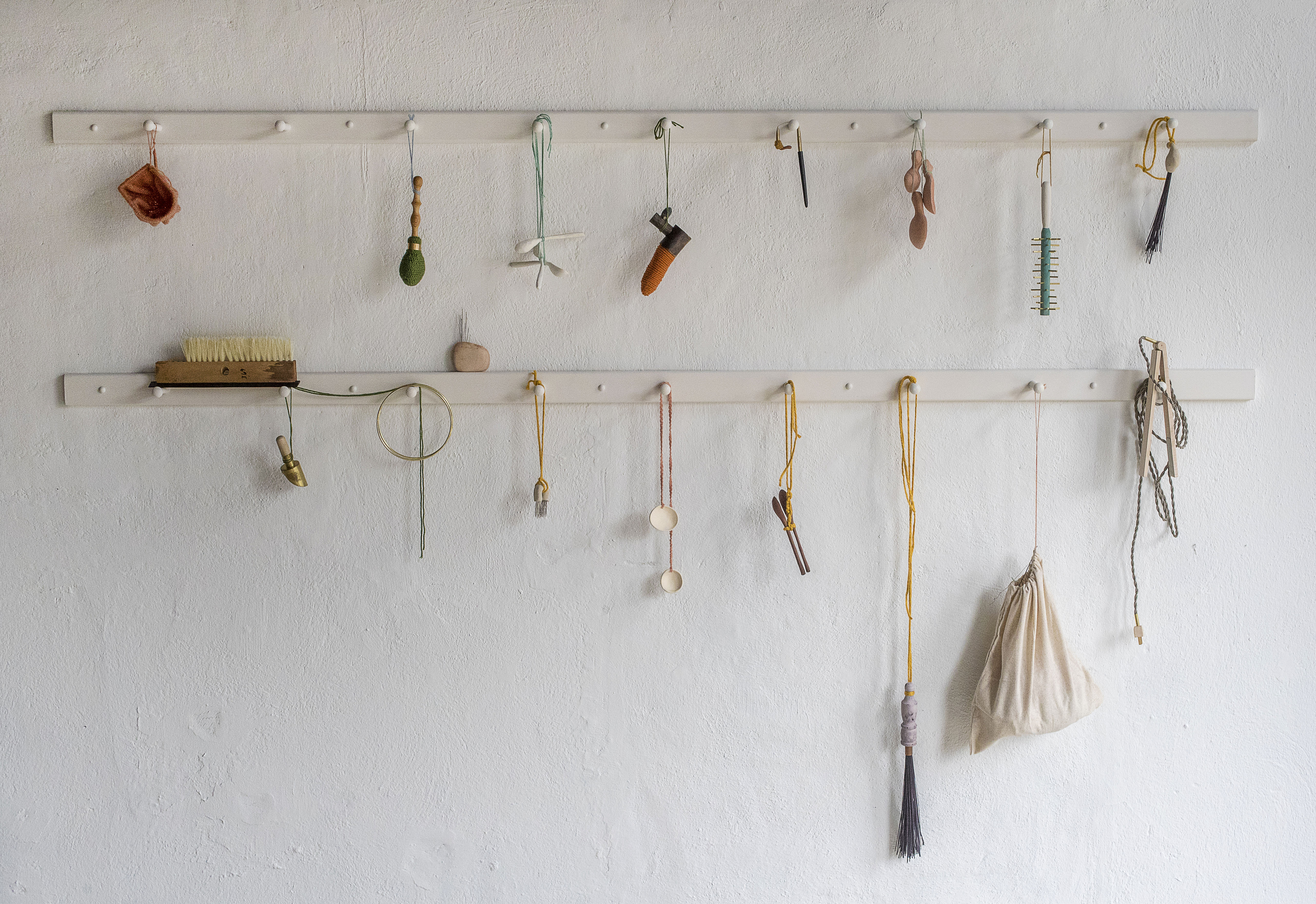 The IM-PLE-MENT ARCHIVE, an ongoing collaboration between visual artists ELLEN KLECKNER and LINDA TIEN, defies simple and tidy explanations. It is simultaneously a collection of objects to be used, a collaborative method of making, an interrogation of craft practices and intersections, and an ongoing contemporary artwork. The Archive began serendipitously in 2017. Kleckner and Tien had met five years earlier at the Appalachian Center for Craft, where Kleckner was finishing her BFA while Tien was there as a resident artist. They became friends by proximity (they shared next-door cabins there), and later began graduate schools at the same time – Kleckner at Ohio University in ceramics, and Tien at Indiana University Bloomington in small metals. A trip to see a mutual friend’s exhibition in 2016 reunited the two, as Tien was now the curator for the Columbus Museum of Art and Design. Tien visited Kleckner’s studio where she discovered Kleckner was making ceramic spoons, and offered to curate them into an exhibition at the museum. “It was one of the first times that I gave my work to someone without controlling the curation or exhibition,” said Kleckner.