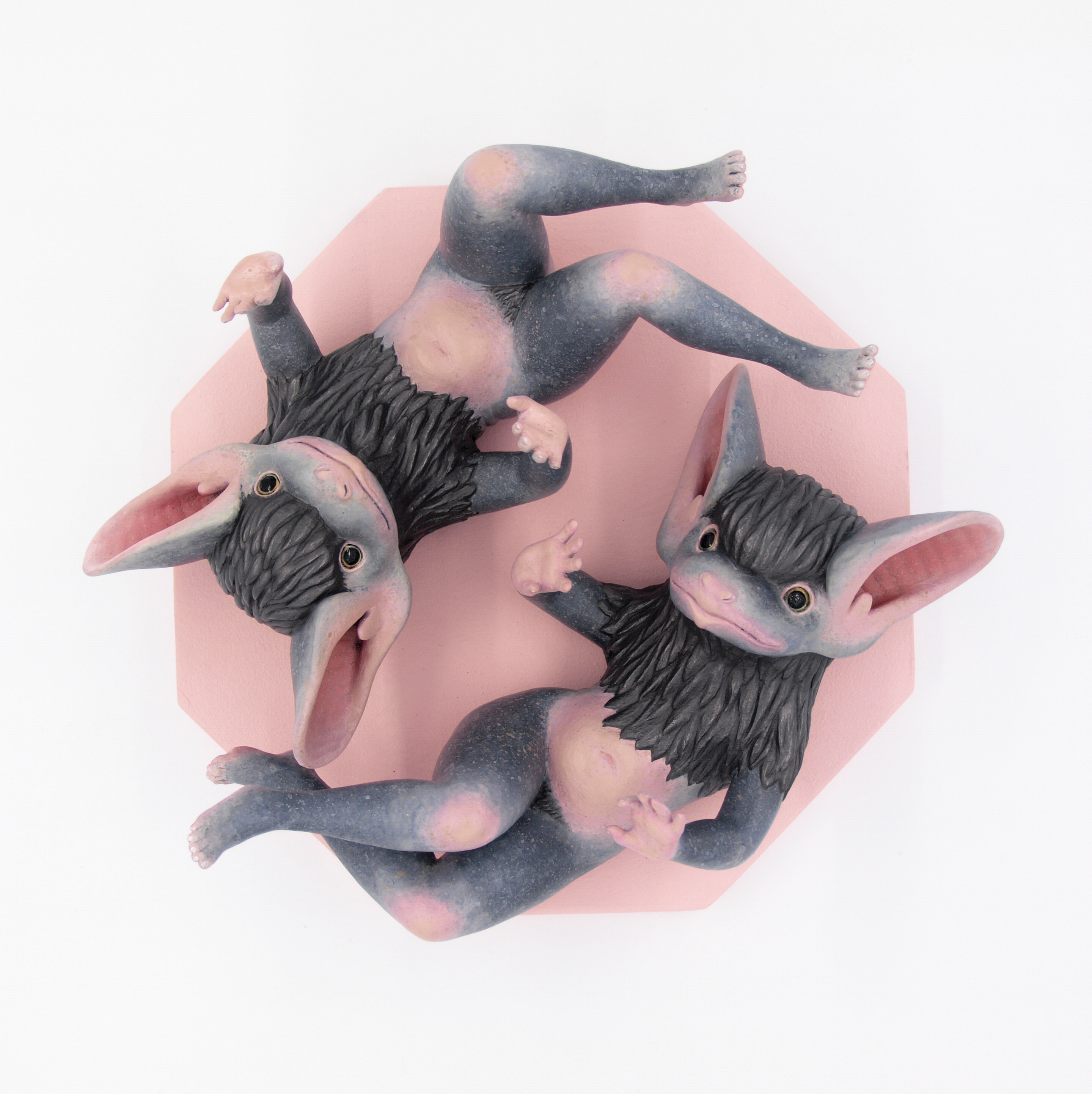 G.V. Kelley, Moonlit Dreamers (en Rose), Midrange ceramic, 2024, underglaze, glaze, graphite, mixed media, 11.25”x13”x6”
