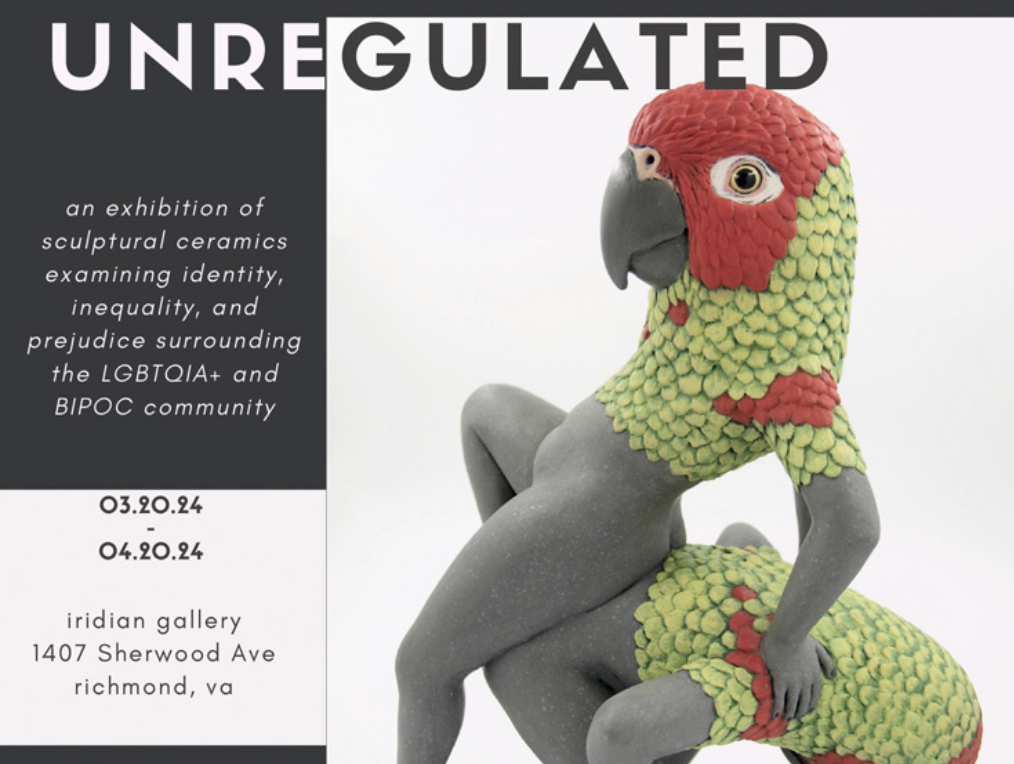 In the heart of Richmond, Virginia, the Iridian Gallery at Diversity Richmond hosted a powerful figurative ceramic exhibition during the 58th Convention of the National Council on Education for the Ceramic Arts (NCECA). Amidst the bustling conference, the Unregulated exhibition stood as a testament to the power of ceramic art in confronting societal norms, challenging inequality, and advocating for underrepresented voices. At its core, Unregulated is a rallying cry for inclusivity and representation within the ceramic arts community. In response to the pressing need to foster greater visibility for LGBTQIA+ and BIPOC artists, the exhibition served as a platform for marginalized voices to be heard and celebrated.