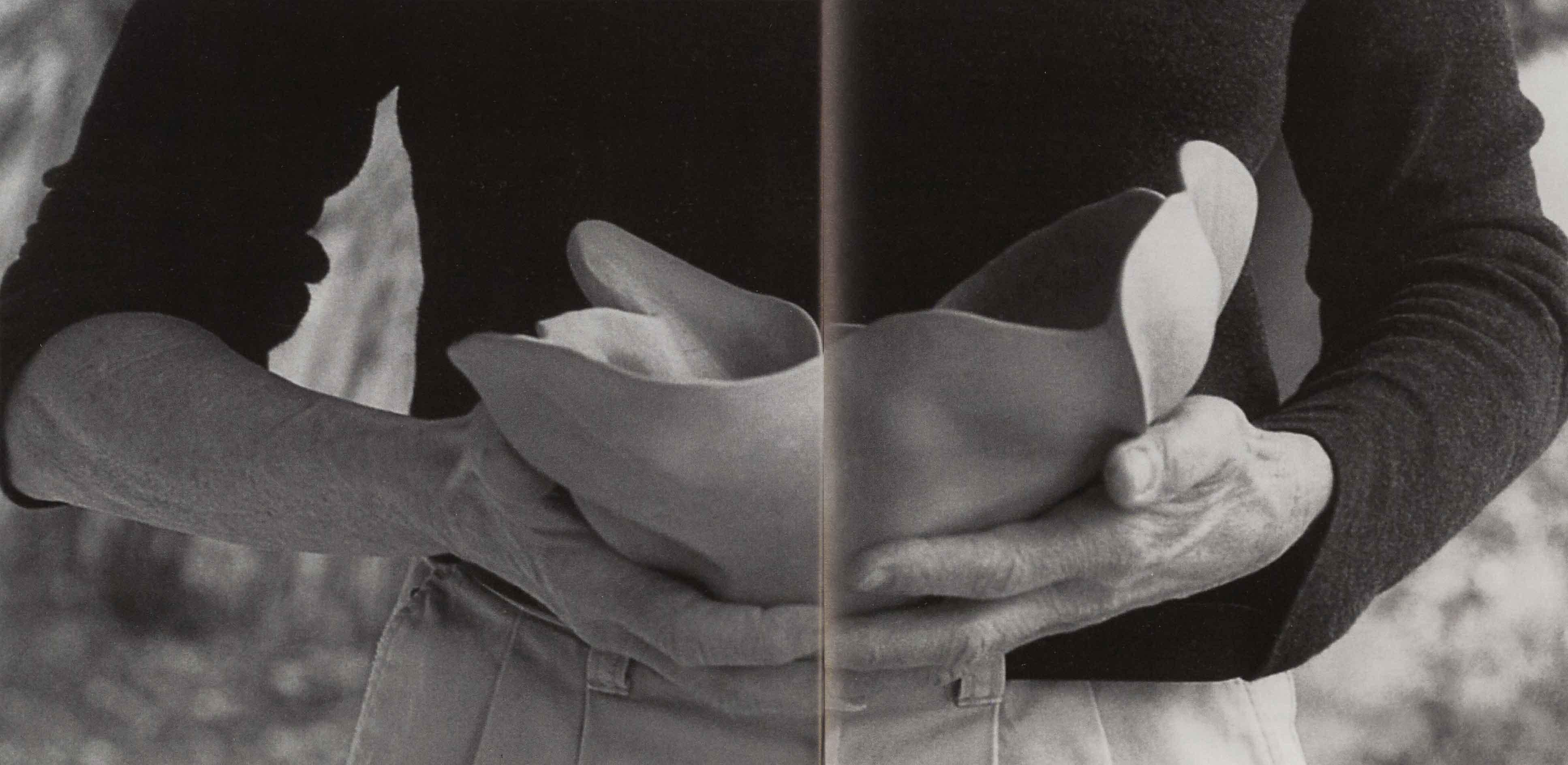 M.C. and I moved with friends to a farm in northeast Pennsylvania where I worked as a production potter for some years. One morning, frustrated by the interference of thought while attempting to meditate, I got up and went to the studio where I prepared a ball of clay, thinking to climb up on the wheel to start the day's work. Instead, I sat down again, melting, this time into a deep thoughtless state. A half-hour later, when I opened my eyes, there, in both my hands, a small pinched bowl, received as a gift. I've been pinching clay ever since, fascinated by its rhythmic slowness, its tactile sensuality, the intimacy of cellular connection, as if I were a partner in a classical 'pas de deux' or participant in a contact improvisation.