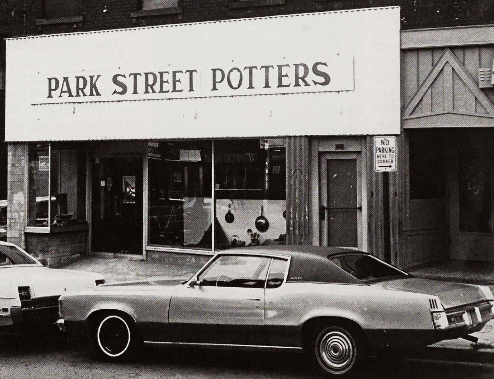 park: a more tightly focused working environment. Here I shared my immediate surroundings with artists and craftspeople working in various media, in a place whose mission was to educate people about "what artists do," as well as to add distinction and class to the neighboring businesses. I was removed here from direct competition with sneakers and other consumer goods. (Though often reminded of them by customers' comments; people would often explain not buying a pot by telling me what they needed/planned to buy instead!) In many ways it was easier to sell my work from this studio, as the people I encountered had more money and were already interested in the arts. In addition I was part of a community of artists, my first taste of the validating and enriching presence of kindred spirits, working separately but along recognizable paths of inquiry.